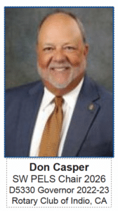 The mission of Southwest PELS is simple – to provide YOU a learning experience with the training, resources, and support so that you will be a GREAT ROTARY LEADER in 2026-27. We look forward to meeting and sharing with you this weekend. Thank you for accepting this leadership role in the organization we all love.