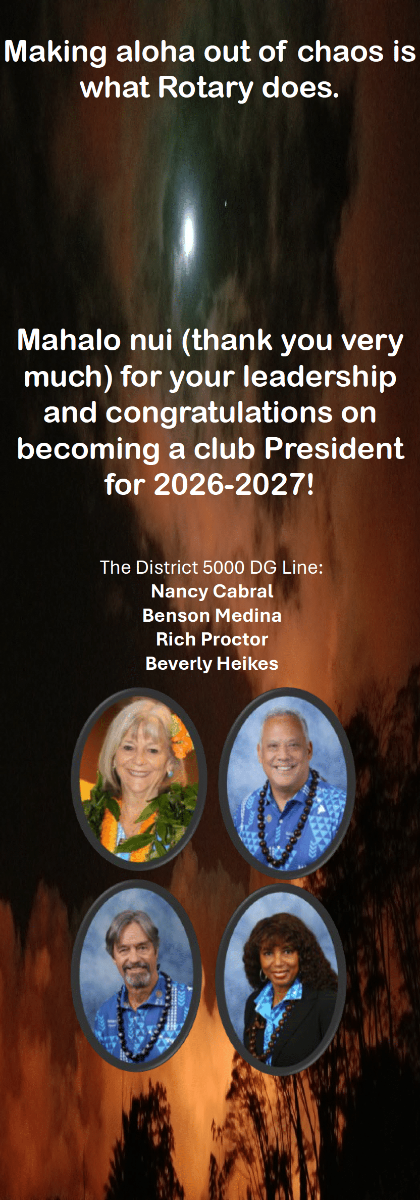 Congratulations to YOU, our next Rotary Leaders chosen by your clubs to serve as President in Rotary Year 2026-27.