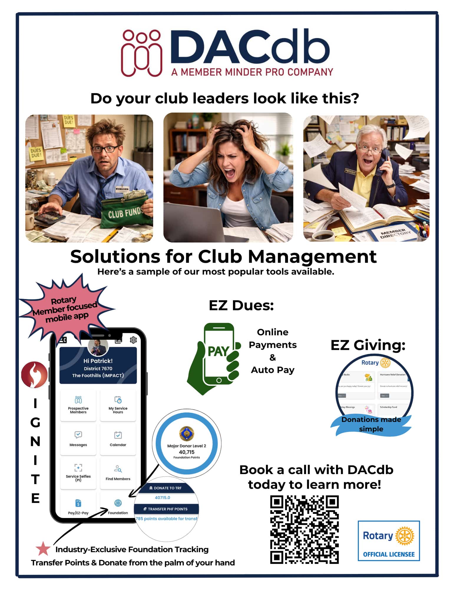 Everything powerful about Rotary begins and ends with our Rotary Clubs. You, as Club President, are crucial to not only Rotary’s current success, but critical to its future. Your responsibility as a Rotary Leader is to build a positive club culture, grow our organization and provide opportunities for your club members to impact the lives of others.
